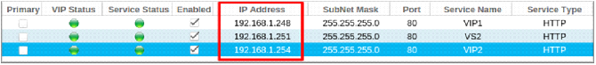 Le rôle manuel permet à la paire de CDA de fonctionner en mode actif-actif pour différentes adresses IP virtuelles. Dans ce cas, la colonne Primary contient une case à côté de chaque adresse IP virtuelle unique qui peut être cochée pour Active ou non cochée pour Passive.