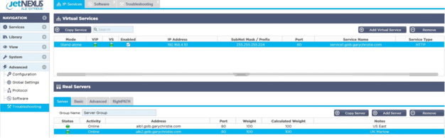 · このバーチャルサービスは、GSLBドメイン内のサーバーのヘルスチェックに使用されます。