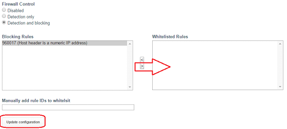 · Drücken Sie auf Konfiguration aktualisieren, wenn Sie alle Regeln aus dem Bereich Blockierung in den Bereich Whitelist übertragen haben.