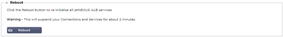 Clicking the Reboot button will power cycle the ADC and automatically bring it back to an active state. A pop-up will be displayed requesting confirmation for the reboot action.