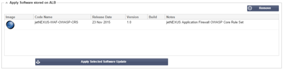 ·     Highlight the jetNEXUS-WAF-OWASP-CRS and click Apply Selected Software Update and click Apply