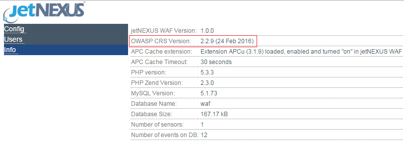 ·     You can also check the Management Info section of the Firewall GUI for the OWASP CRS Version