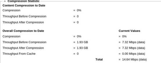 Los valores proporcionados en esta sección informan de cuánta compresión ha logrado el CAD en todo el contenido. El porcentaje típico depende del número de imágenes precomprimidas que contengan sus servicios. Cuanto mayor sea el número de imágenes, menor será probablemente el porcentaje de compresión global.