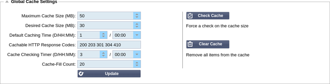 この値は、キャッシュを切り詰めるための最適な RAM を示します。最大キャッシュサイズは、キャッシュの絶対的な上限を示しますが、希望キャッシュサイズは、キャッシュサイズの自動または手動によるチェックが行われたときに、キャッシュが達成しようとする最適なサイズを意図しています。最大キャッシュサイズと希望キャッシュサイズの間のギャップは、キャッシュサイズを定期的にチェックして期限切れのコンテンツを切り詰める間に、新しいコンテンツが到着したり重なったりすることに対応するために存在します。繰り返しになりますが、デフォルト値(30MB)を受け入れて、「モニター」→「統計」でキャッシュのサイズを定期的に確認し、適切なサイズにすることがより効果的です。