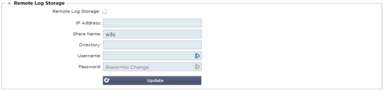 Tous les journaux du W3C sont stockés sous forme comprimée sur le CDA toutes les heures. Les fichiers les plus anciens sont supprimés lorsqu'il reste 30 % d'espace disque. Si vous souhaitez les exporter vers un serveur distant pour les conserver, vous pouvez le configurer en utilisant un partage SMB. Veuillez noter que le journal W3C ne sera pas transféré vers l'emplacement distant tant que le fichier n'aura pas été complété et compressé. Comme les journaux sont écrits toutes les heures, cela peut prendre jusqu'à deux heures dans une appliance de machine virtuelle et cinq heures pour une appliance matérielle.