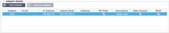 This section of the Network panel shows the network interfaces that are installed in your ADC appliance. You can add and remove adapters as needed.