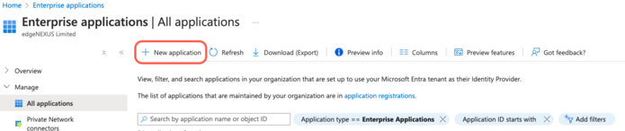 Damit die SAML-Authentifizierung erfolgreich funktioniert, müssen Sie eine Unternehmensanwendung in Ihrem Microsoft Entra Admin Portal einrichten. Dies ist eine einfache Aufgabe und ermöglicht die Bereitstellung des Signierzertifikats, das für SAML-Authentifizierungsanfragen und Token benötigt wird, sowie der Konfigurations-XML-Daten.
