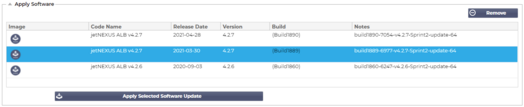 In diesem Abschnitt werden alle auf dem ALB gespeicherten und für die Bereitstellung verfügbaren Softwaredateien angezeigt. Die Liste enthält auch aktualisierte Signaturen der Web Application Firewall (WAF).