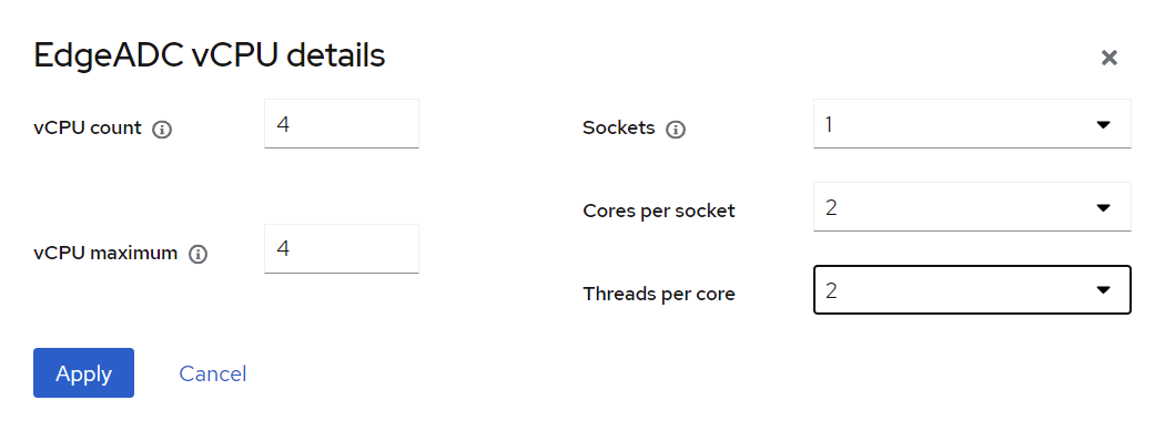 Per allocare la vCPU, viene visualizzata una finestra di dialogo simile a quella riportata di seguito.
